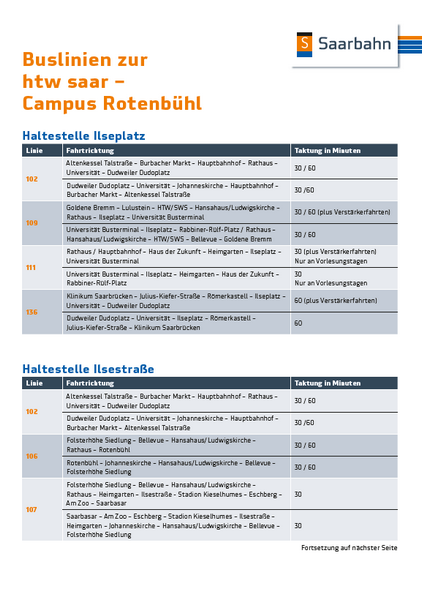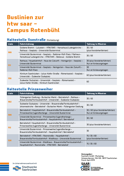 Buslinien zur HTW Saar – Campus Rothenbühl