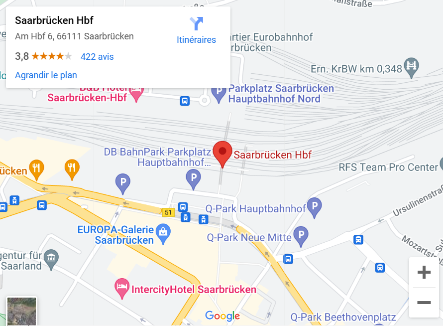 Saarbrücken’s railway station, which was a through station, was put into operation on 16 November 1852. It is located in the city centre (Am Hauptbahnhof 6 – 12 – 66111 Saarbrücken) and is used by almost 10 million travellers every year.